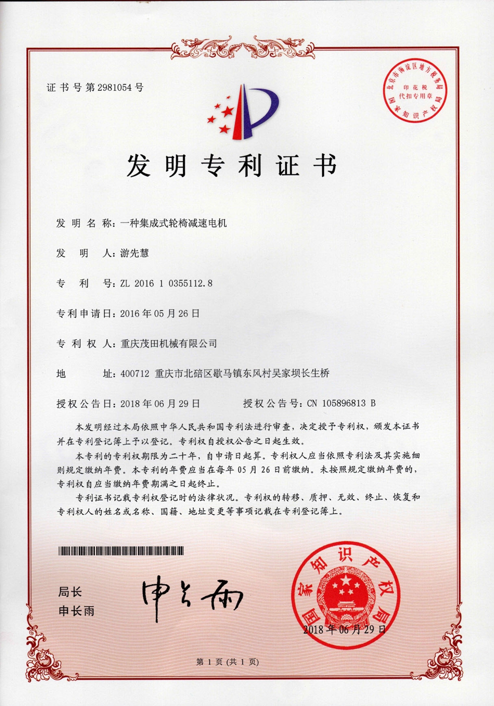 重慶茂田機械有限公司是國家級小巨人企業(yè)、國家高新技術企業(yè)、重慶市專精特新企業(yè)、重慶市知識產(chǎn)權優(yōu)勢企業(yè),致力于現(xiàn)代化山地農(nóng)業(yè)機械、各類非標減速電機及其控制系統(tǒng)的研發(fā)、生產(chǎn)、銷售。擁有重慶市市級研發(fā)平臺1個 目前研發(fā)、生產(chǎn)、銷售產(chǎn)品廣泛應用于農(nóng)業(yè)機械、醫(yī)療康復設備、交通代步工具、智能搬運設備、以及機器人動力系統(tǒng)等領域。我們的產(chǎn)品具有完整的自主知識產(chǎn)權,擁有多項專利技術及“重慶